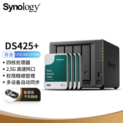 自營(yíng)群暉四核心四盤(pán)位網(wǎng)絡(luò)存儲(chǔ)服務(wù)器 數(shù)據(jù)備份服務(wù)器 DS425+配4塊群暉原廠(chǎng)12TB硬盤(pán)