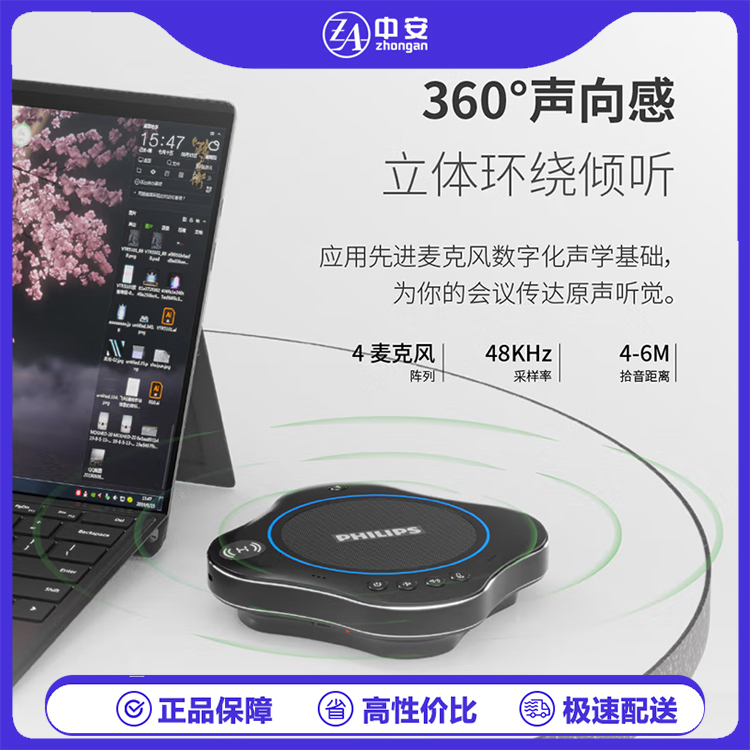 飛利浦視頻會(huì)議全向麥克風(fēng)免驅(qū)無(wú)線藍(lán) 桌面揚(yáng)聲器 (適用40平米以內(nèi)會(huì)議室)6米拾音揚(yáng)聲器0500 PSE 0500 (兼容鴻蒙 配藍(lán)牙接收器