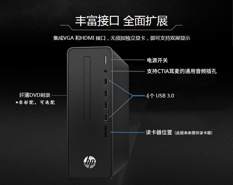 商品名稱:惠普臺式電腦 惠普(HP)臺式計算機 型號 280 G5 SFF 臺式電腦(i3-10100/8G/1TB+256GSSD/無光驅(qū)/Win10H/USB鍵鼠標/180W電源/3年保修/21.5液晶顯示器)