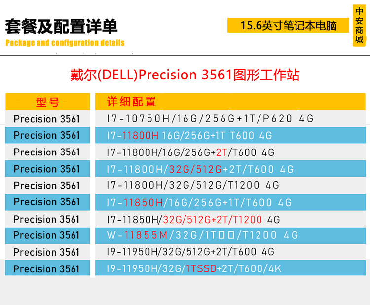 自營戴爾筆記本電腦 戴爾(DELL)高性能筆記本 Precision 3561 15.6英寸【I7-11800H 16G 256G+1T T600 4G】