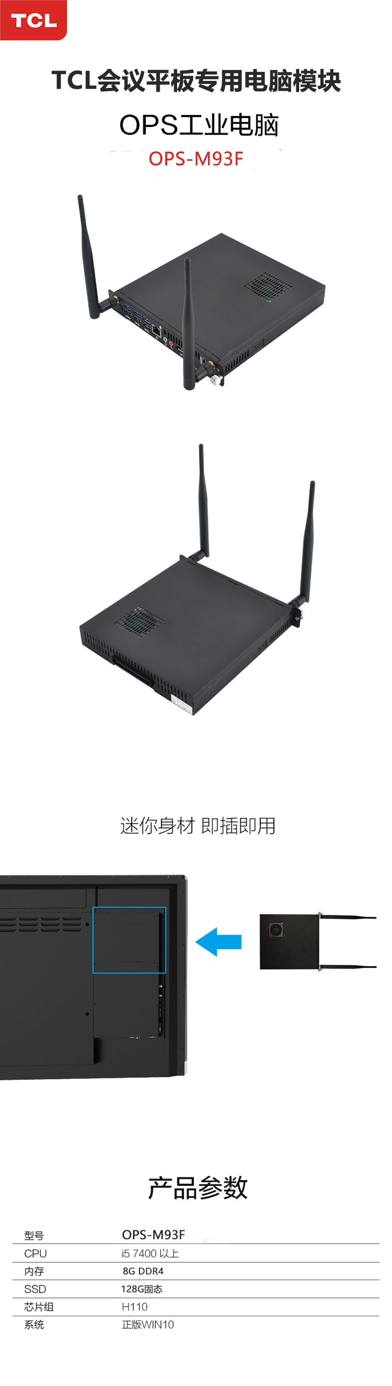 商品名稱:OPS-M93F電腦模塊 TCL智能會(huì)議平板工業(yè)電腦模塊(4G+128G+正版WIN10系統(tǒng))