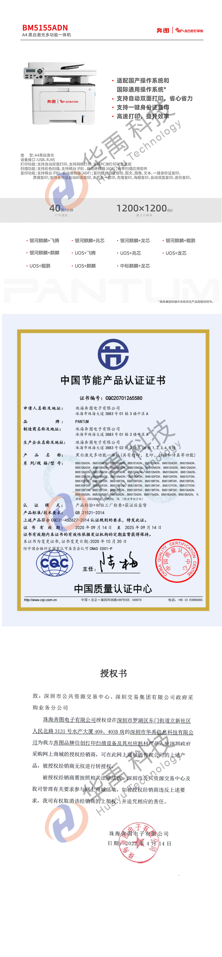 商品名稱:奔圖 BM5155ADN A4黑白激光多功能打印一體機