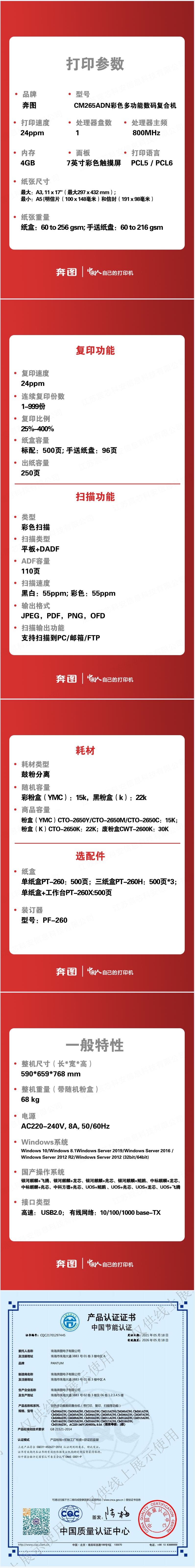 商品名稱:奔圖 CM265ADN A3彩色多功能數(shù)碼復合機