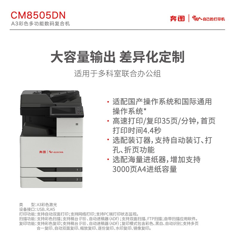 商品名稱:奔圖(Pantum)CM8505DN A3彩色多功能數(shù)碼復(fù)合機(jī)