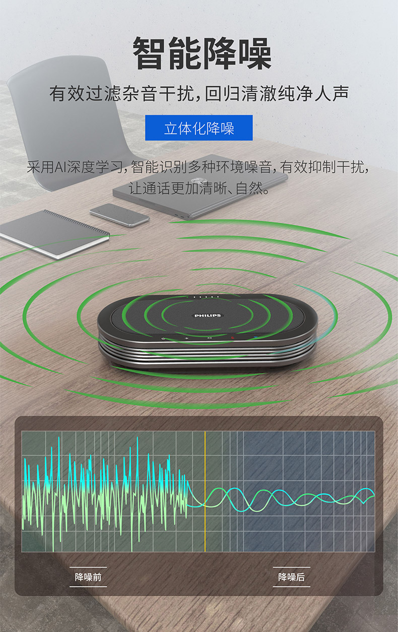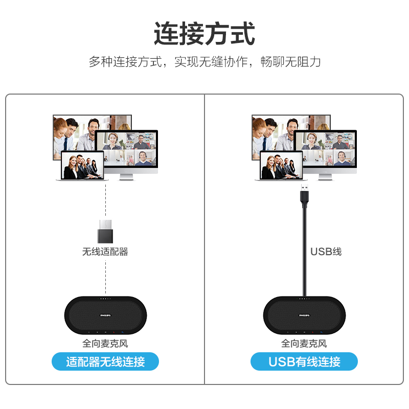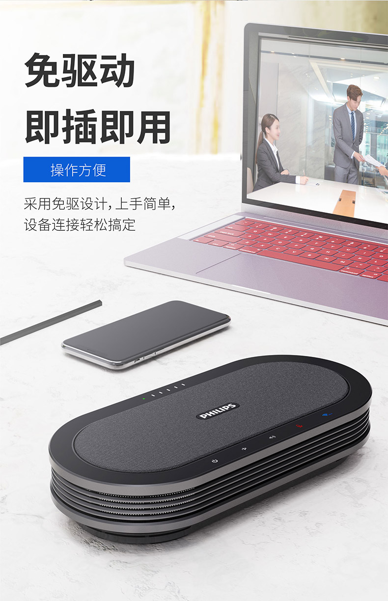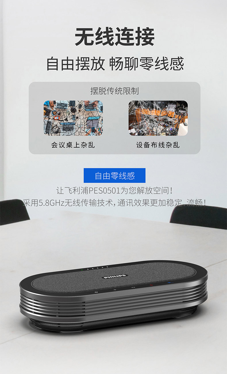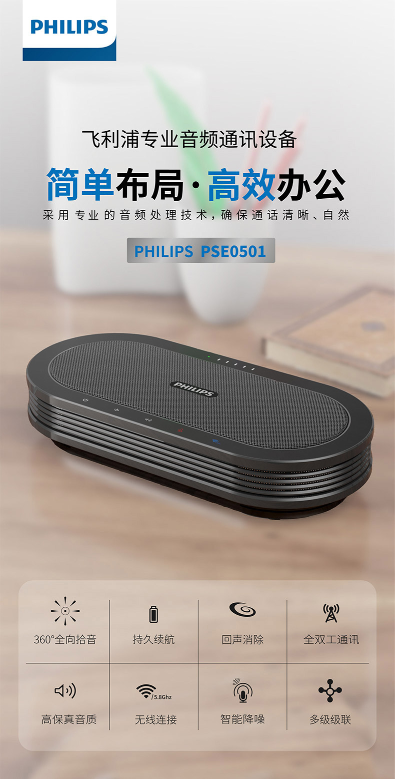 商品名稱:飛利浦視頻會議全向麥克風 5.8無線/USB連接 拾音揚聲器 (適用40平米會議室)帶電池 多個串聯(lián)全向麥 PSE0501