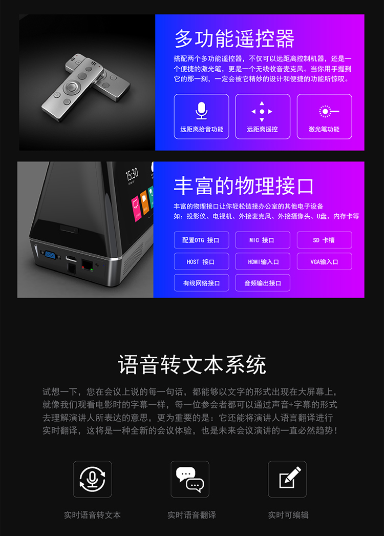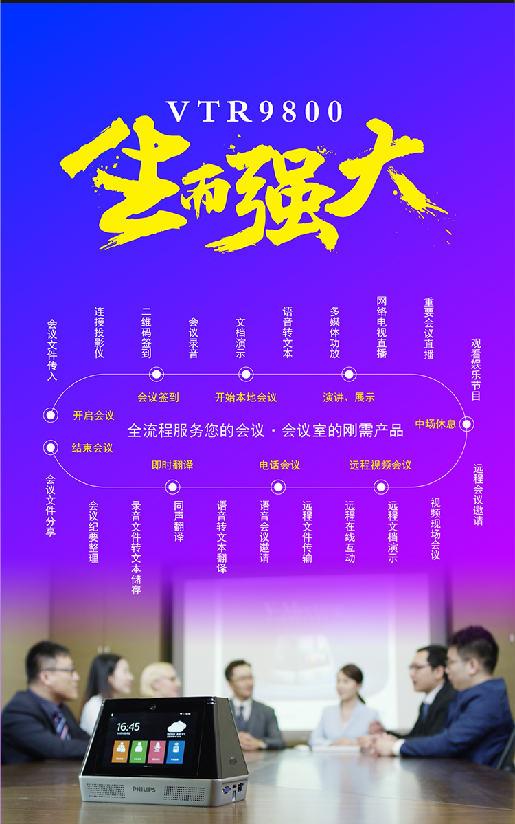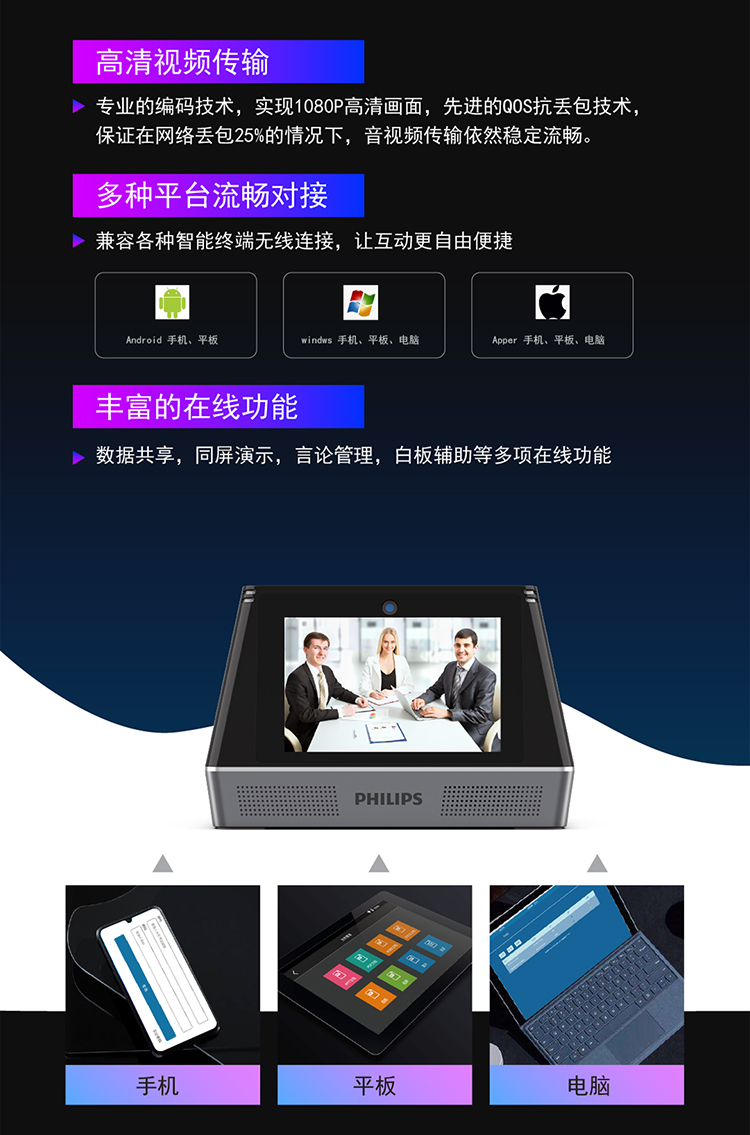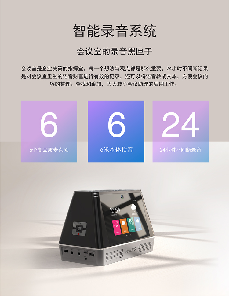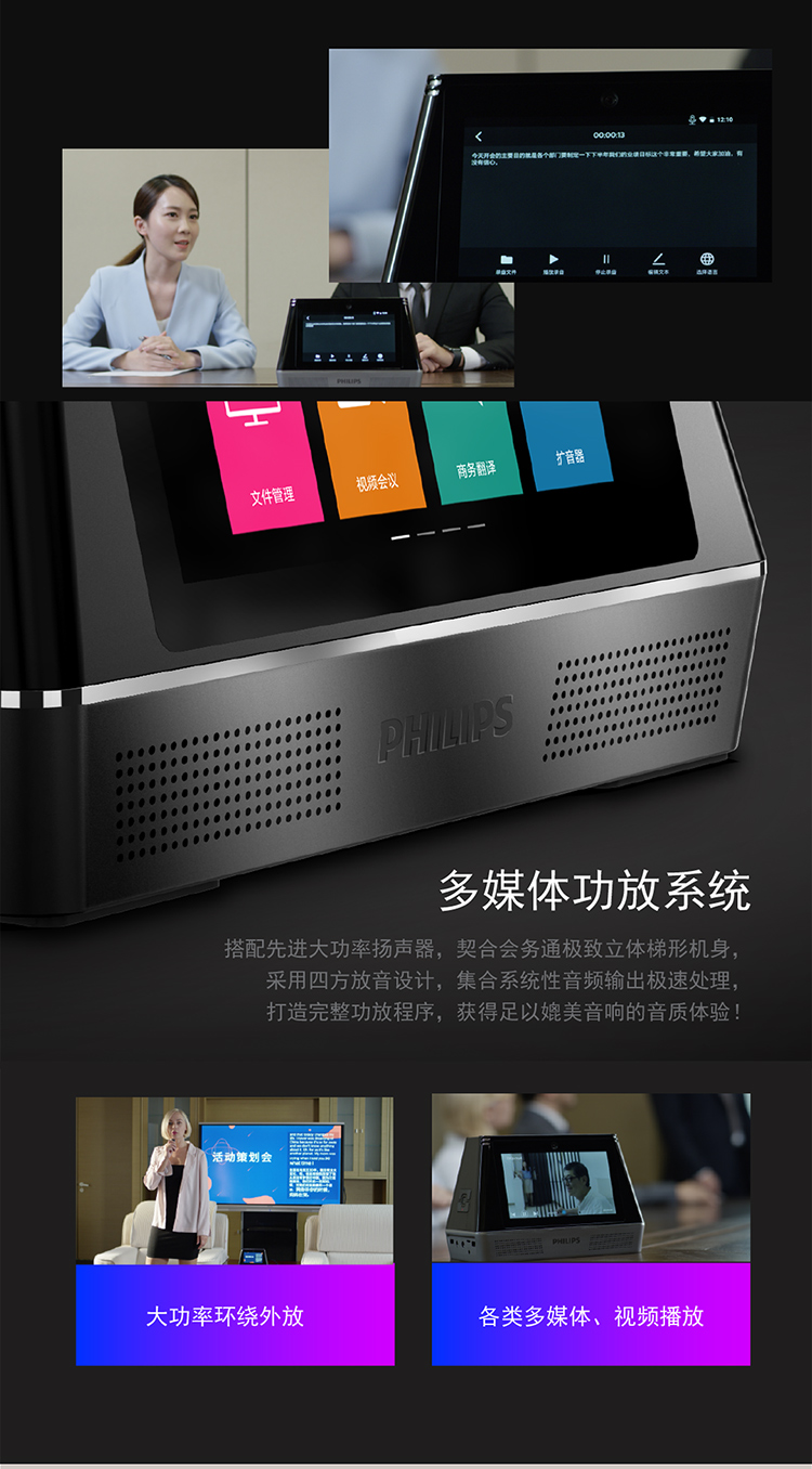 商品名稱:飛利浦PHILIPS視頻會(huì)議多功能智能終端一體機(jī)語音轉(zhuǎn)文本商務(wù)翻譯電話會(huì)議會(huì)務(wù)錄音擴(kuò)音VTR9800 VTR9800(視頻會(huì)議多功能一體機(jī))