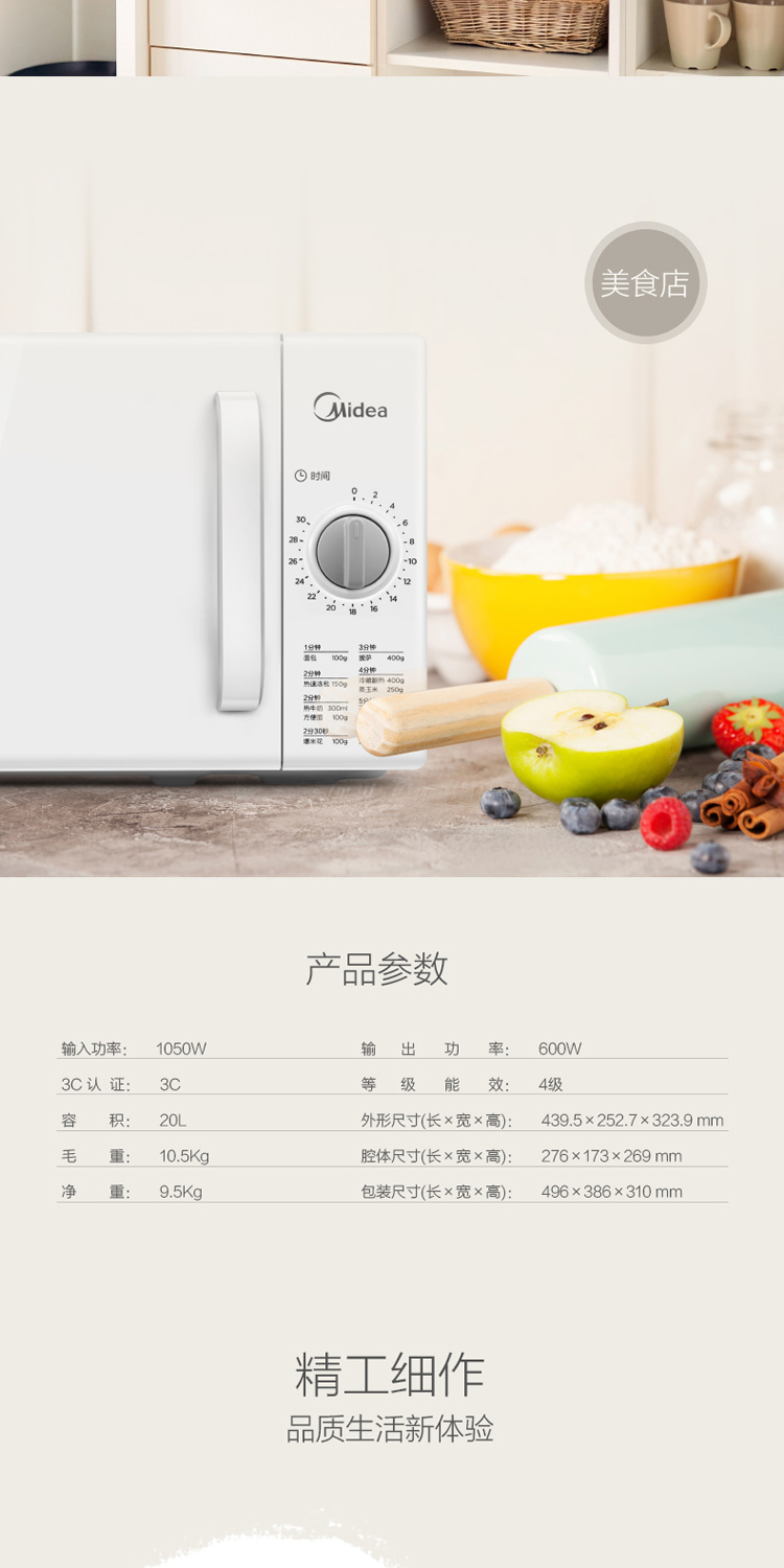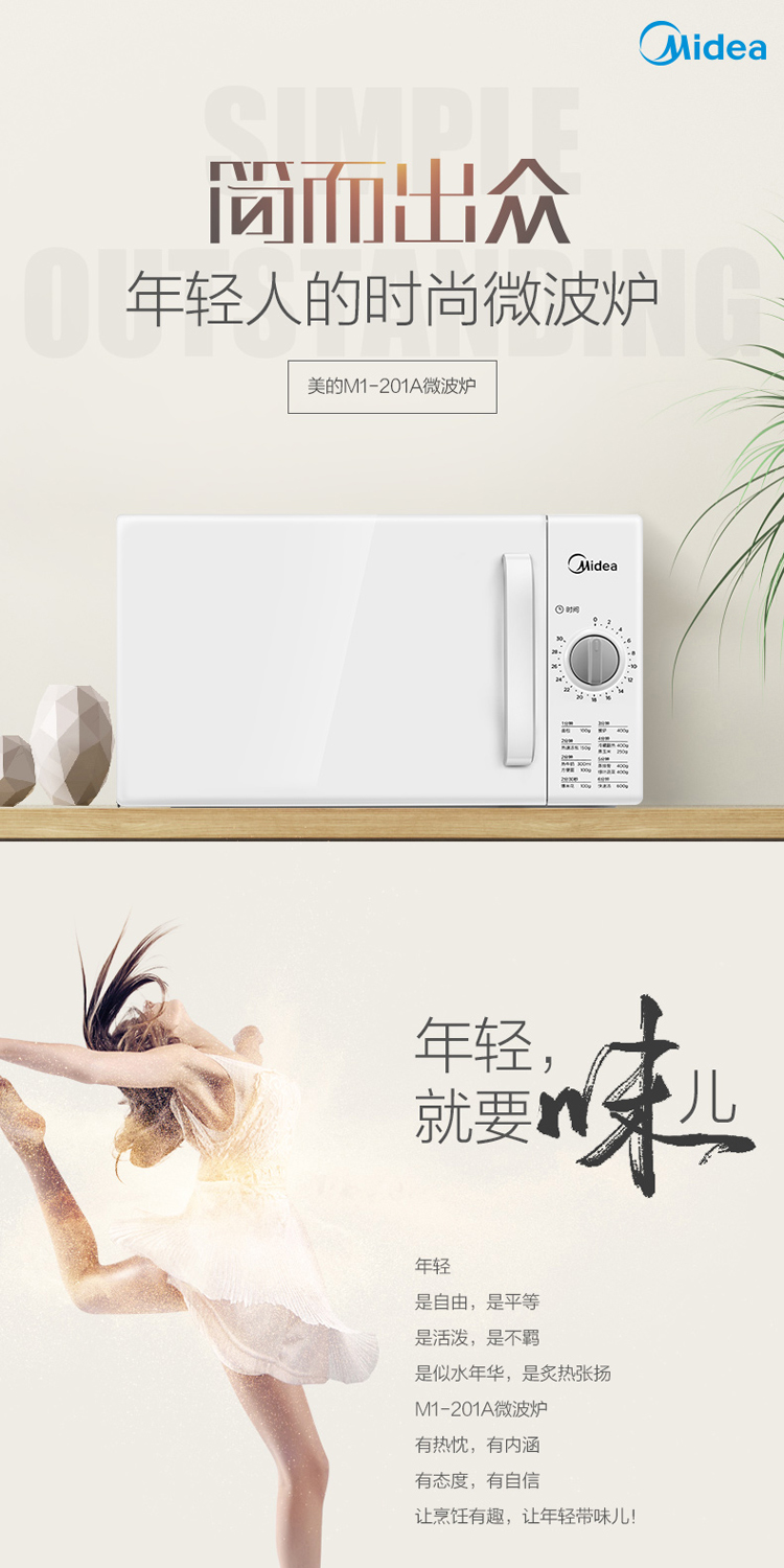 商品名稱(chēng):美的/Midea 微波爐 21L家用微波爐蒸箱烤箱 白色 M1-M100
