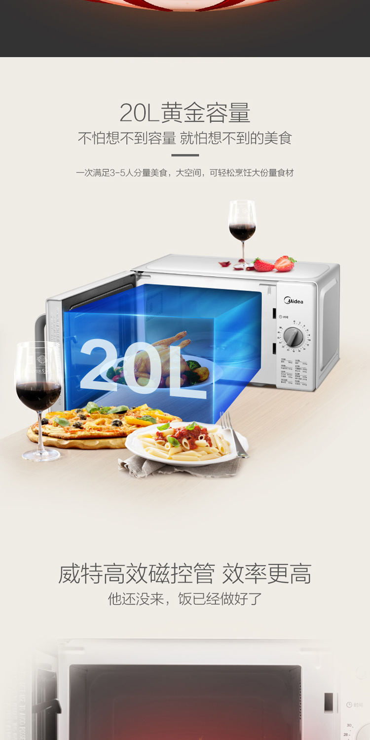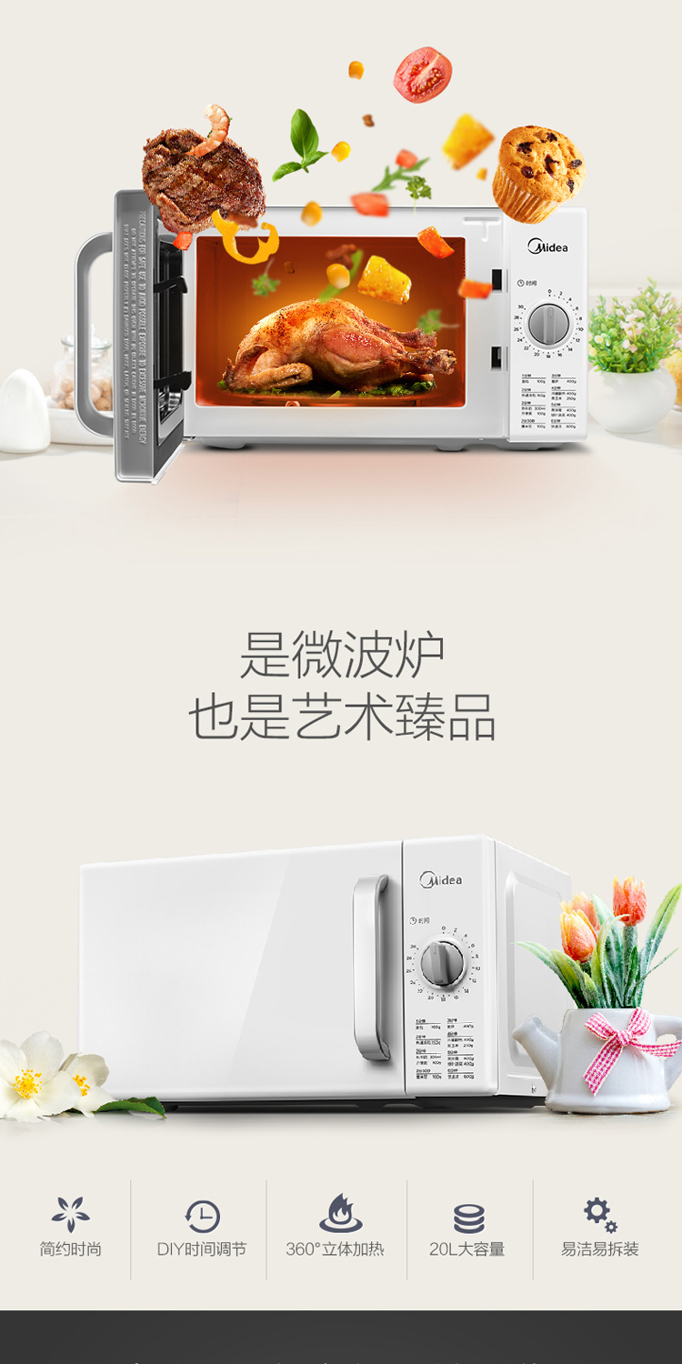 微波爐 美的微波爐 家用微波爐 轉(zhuǎn)盤(pán)加熱微波爐 一鍵解凍 20L