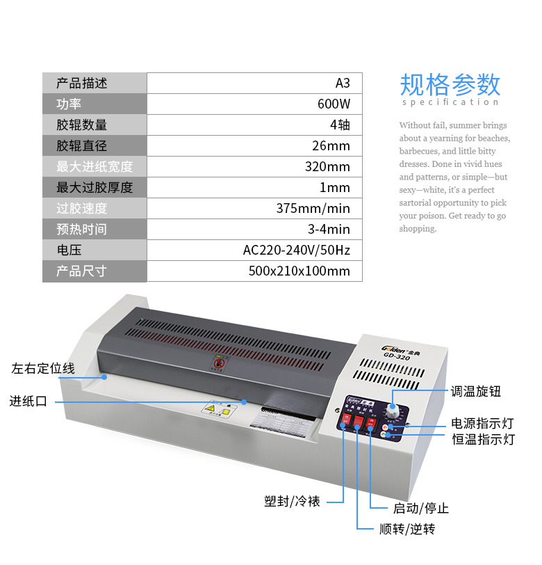 商品名稱:塑封機(jī) 金典塑封機(jī) 辦公塑封機(jī)