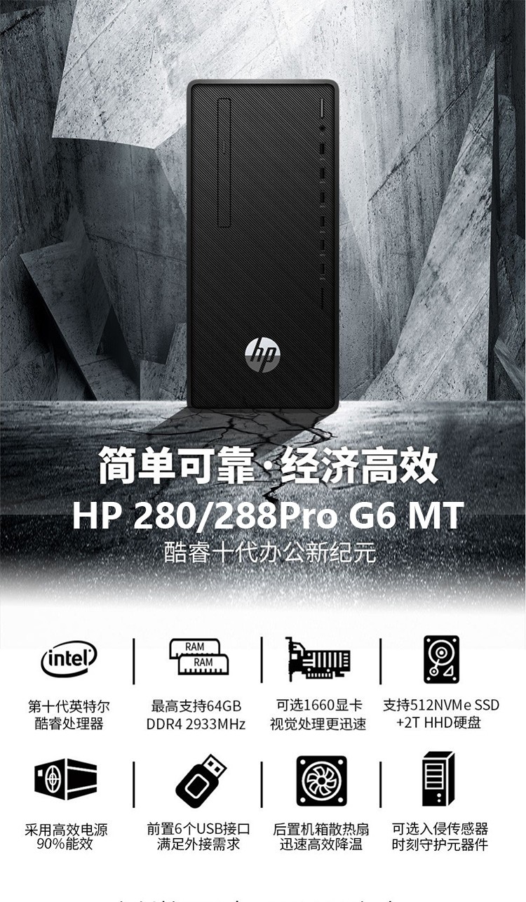 HP 288 Pro G6 MT (NewIntel Core i5-10500 3.1GHz 6C 65W/8G(DDR42666)/1TB SATA 6.0Gb/s Hard Drive+256G(HPNVMeM.2SSD固態(tài)硬盤/超薄DVDRW/NVIDIA GeForce GTX745 4G 獨立顯卡/Windows10 Home64位/N0FDD/USBKB/USBOpticalMouse/TPM 2.0可信平臺模塊/EPEAT(綠色電子產(chǎn)品環(huán)境)SILVER認(rèn)證/310W 90%高效電源/網(wǎng)絡(luò)同傳和硬盤還原-Netclone/ 3年保修+ 21.5寸 顯示器