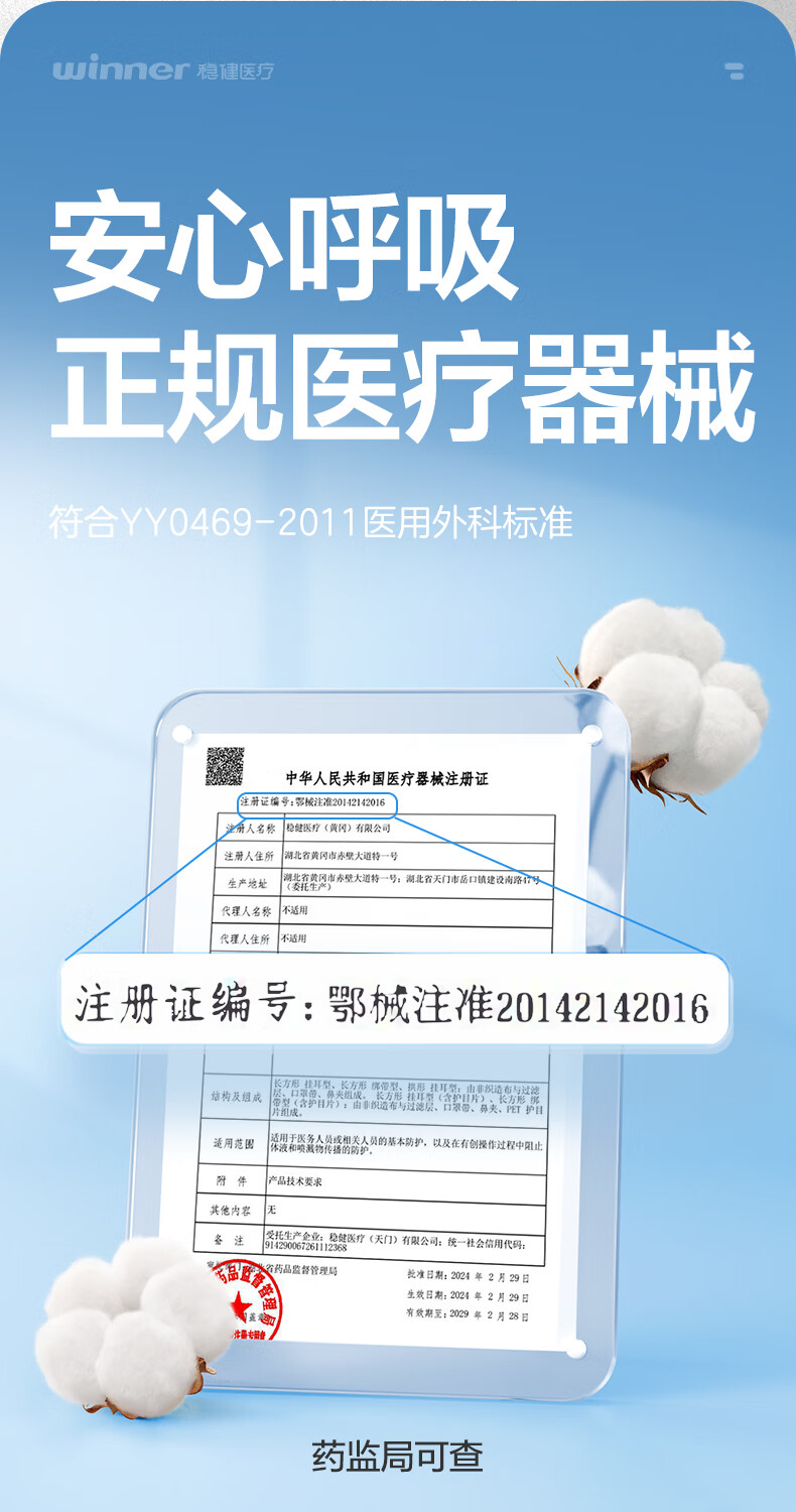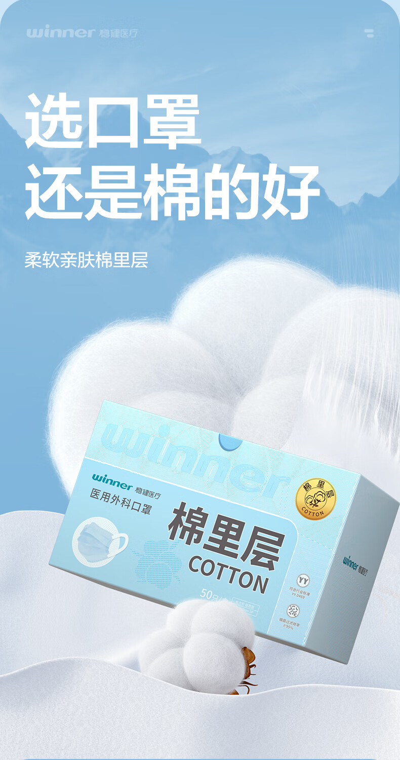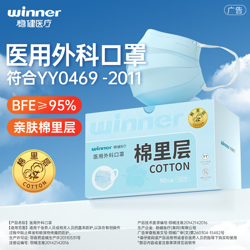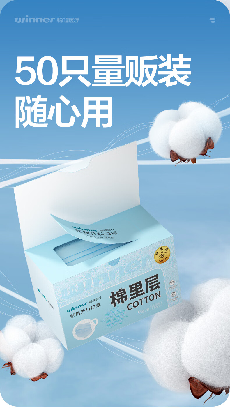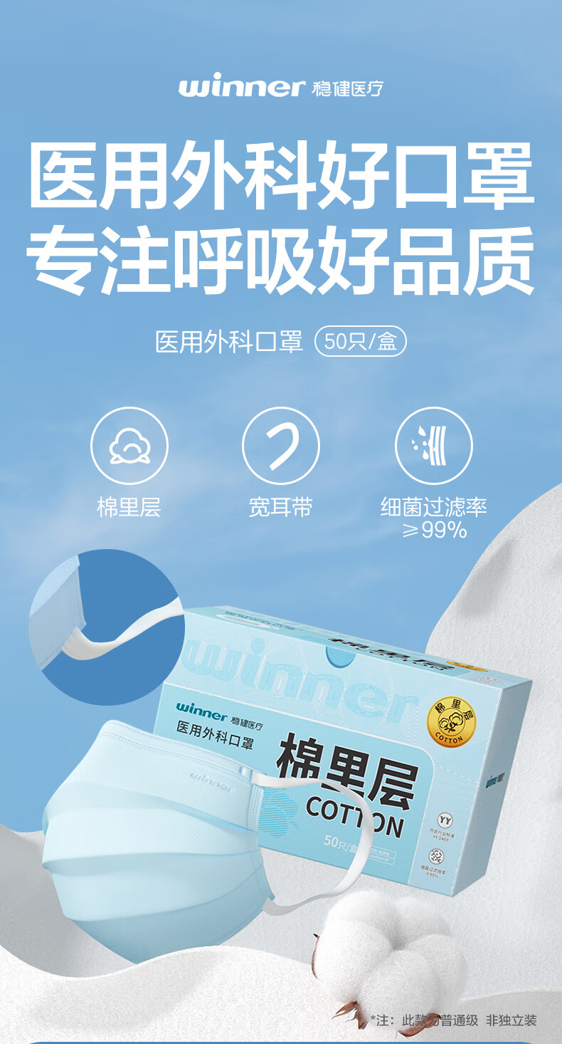商品名稱:穩(wěn)健口罩 一次性口罩 醫(yī)用外科口罩50只/盒寬耳帶