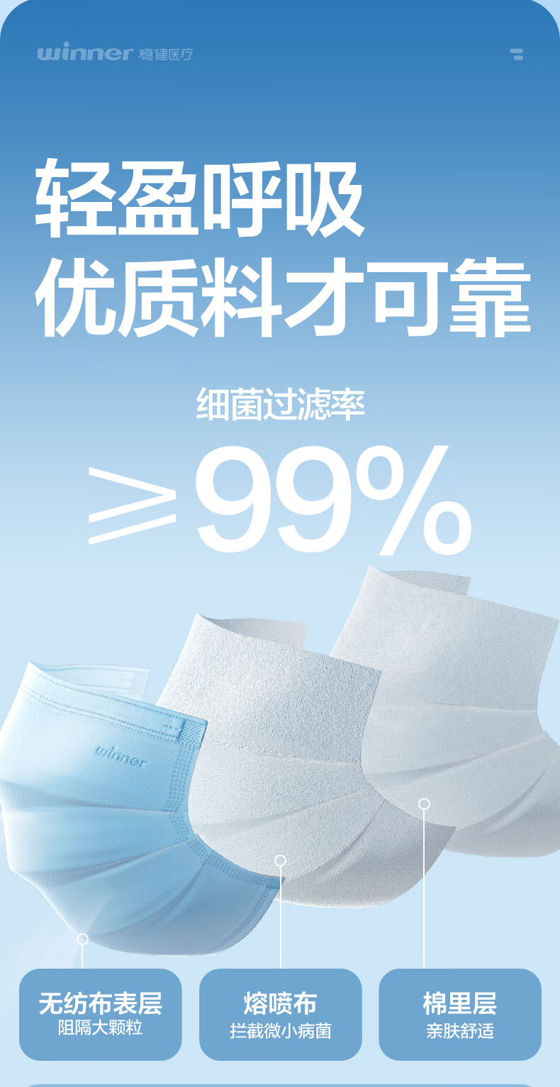 兒童口罩 一次性口罩 無菌口罩 穩(wěn)健(Winner) 兒童尺寸一次性醫(yī)用護理口罩滅菌級 604-006694(1只/袋,30只/盒,60盒/箱 )單位:只