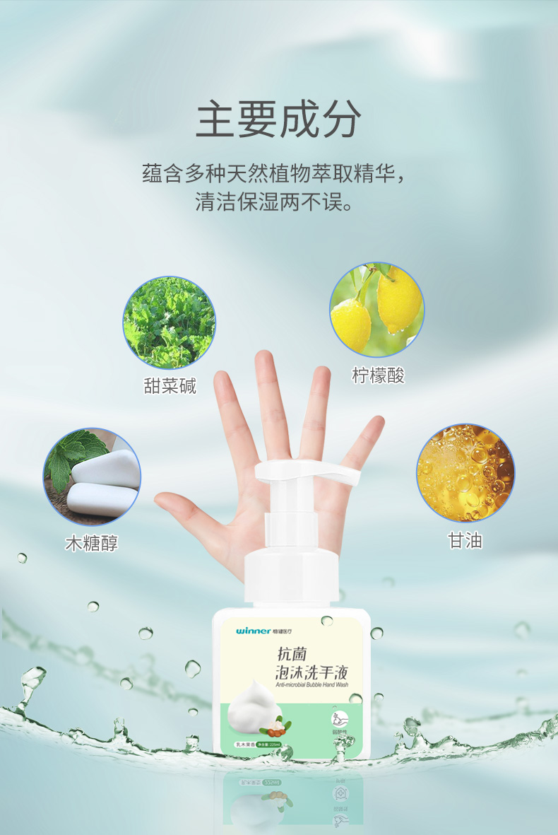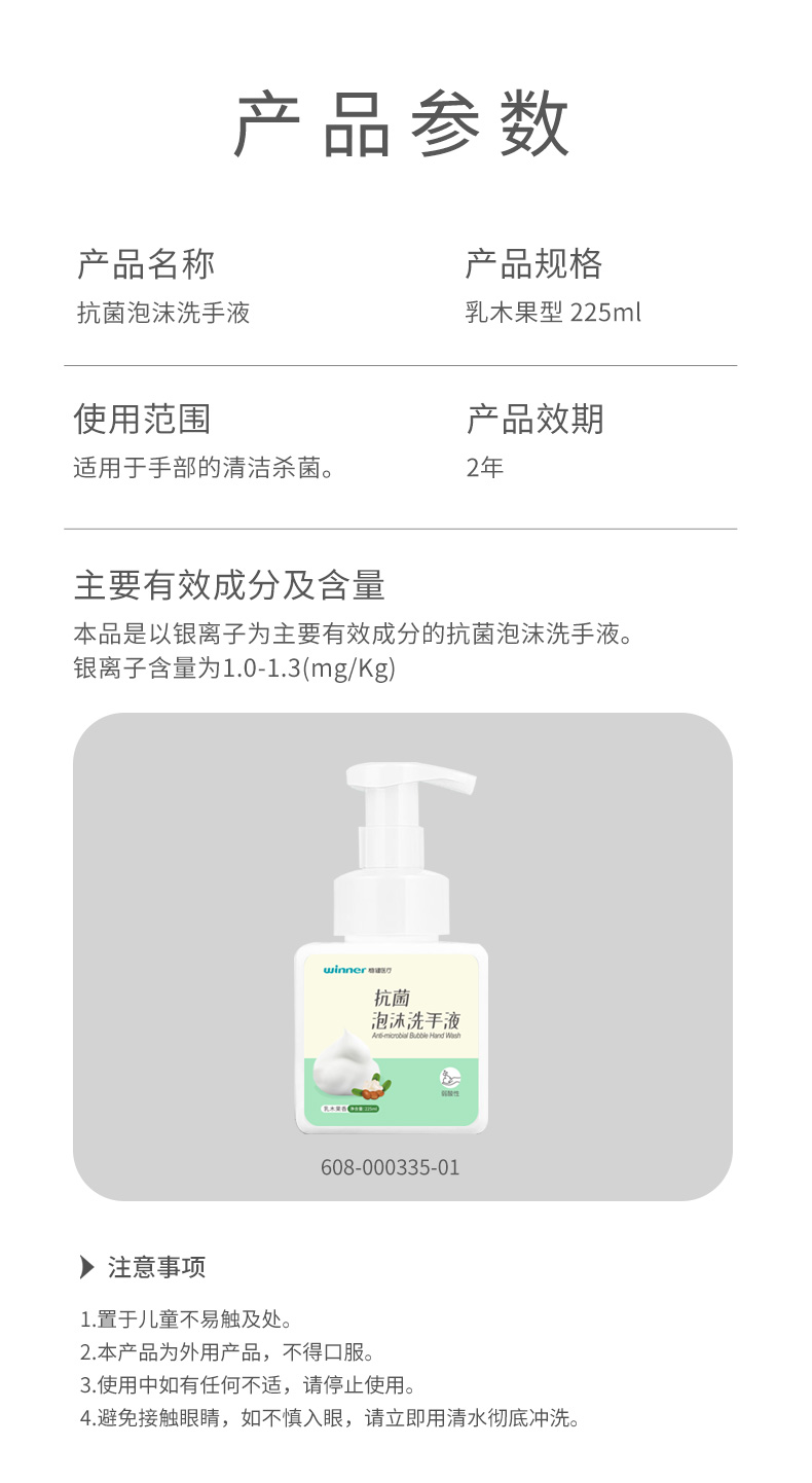 商品名稱:應急防疫物資 穩(wěn)?。╓inner) 氨基酸泡泡洗手液225ml/瓶 608-000335(225ml/瓶,24瓶/箱 )單位:瓶