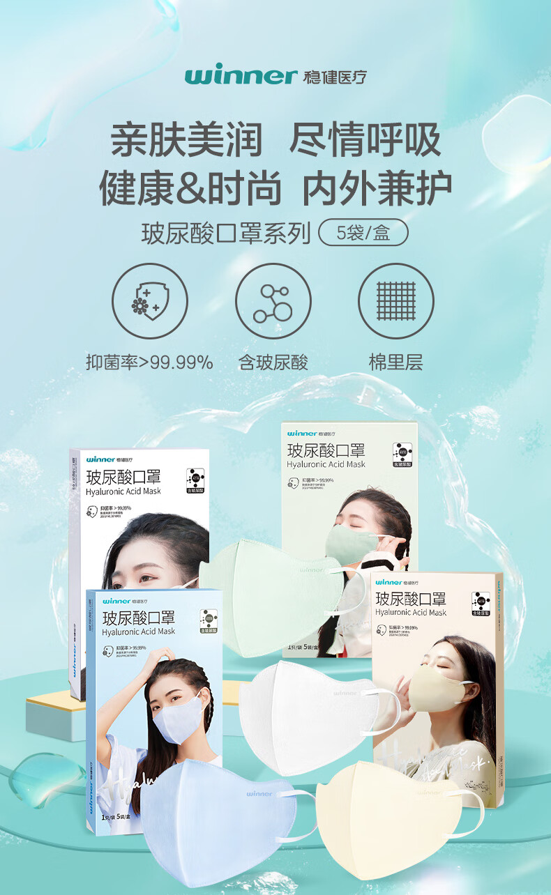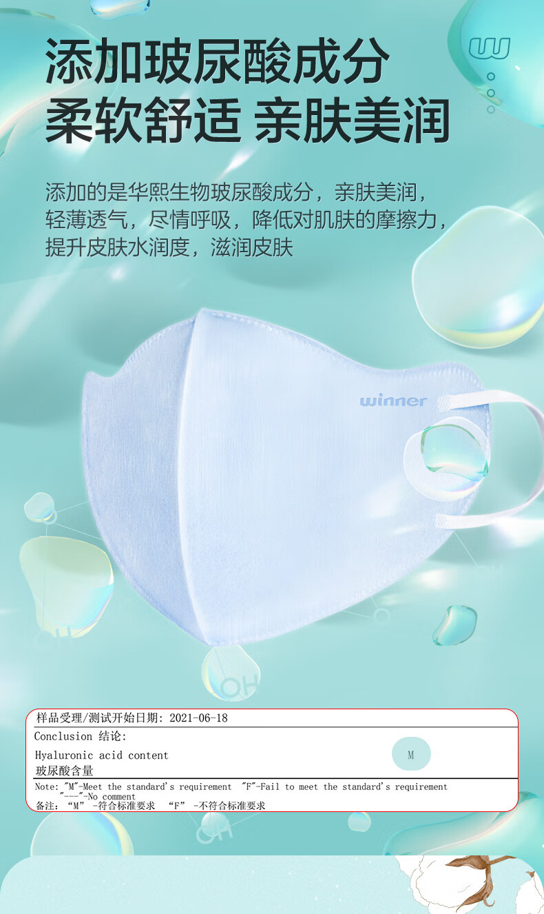 商品名稱:口罩 一次性口罩 玻尿酸口罩 穩(wěn)?。╓inner)玻尿酸3D立體口罩 靜謐藍(lán) 5袋/盒 604-008742(1只/袋,5袋/盒)單位:只