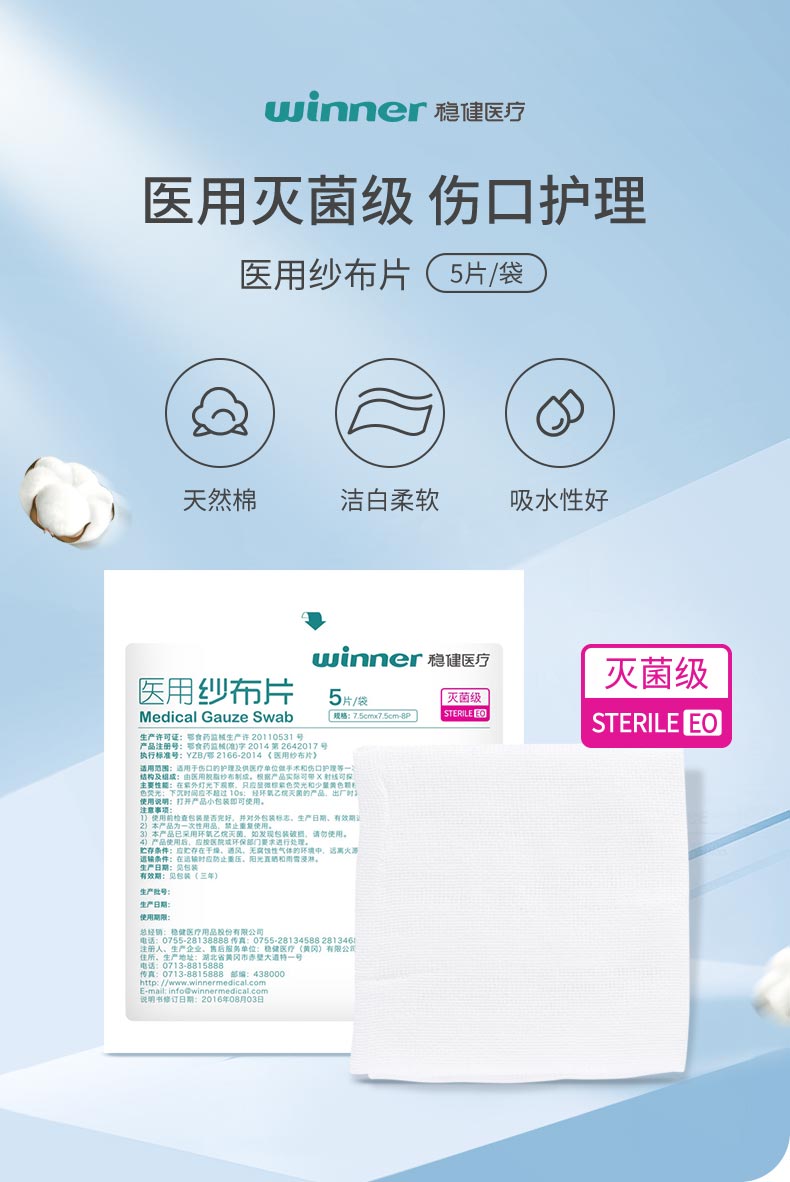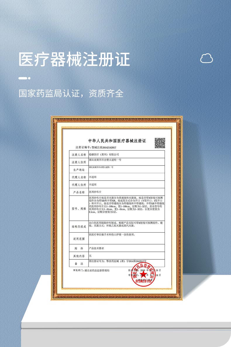 由醫(yī)用脫脂紗布制成,根據(jù)產(chǎn)品實際可帶x射線可探測組件、縫線。