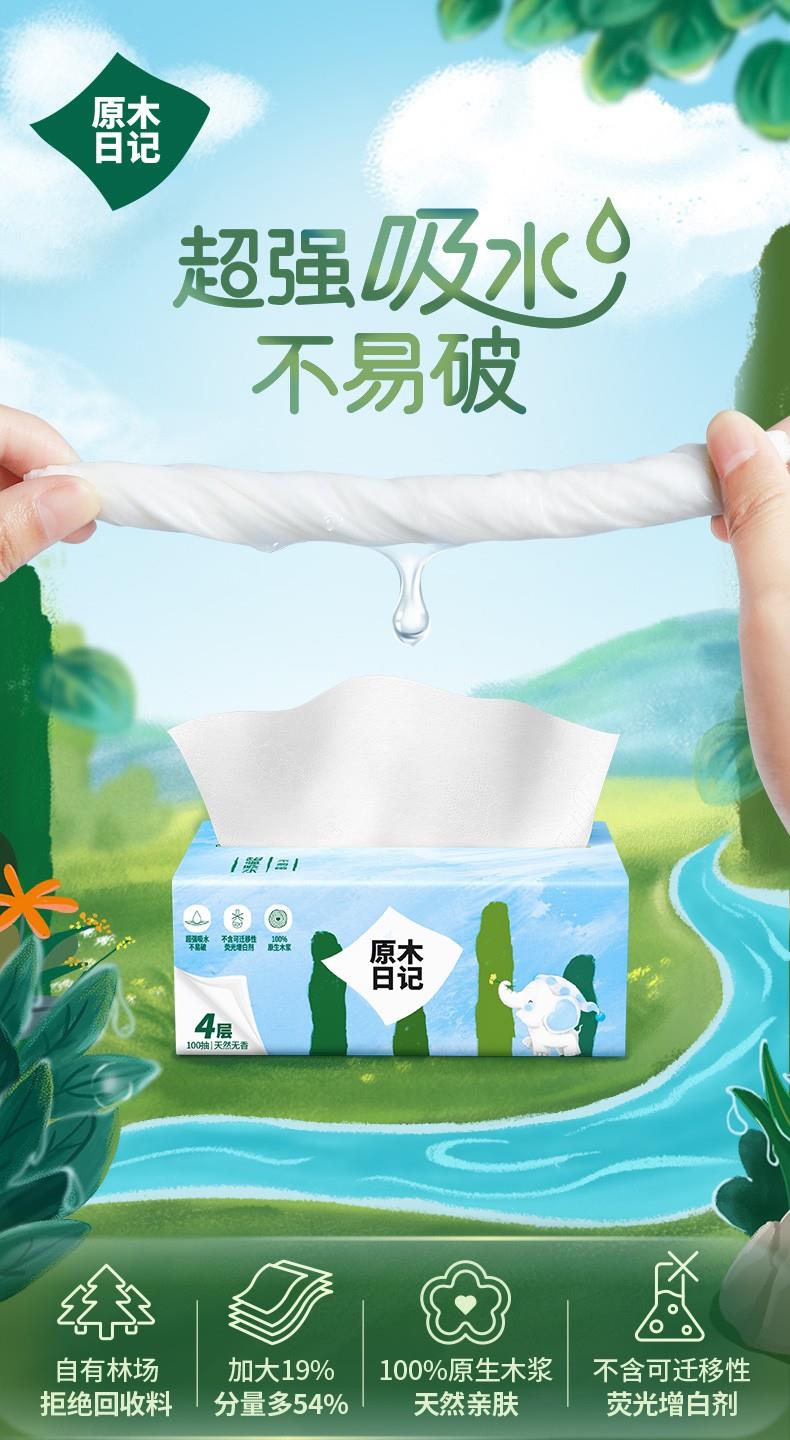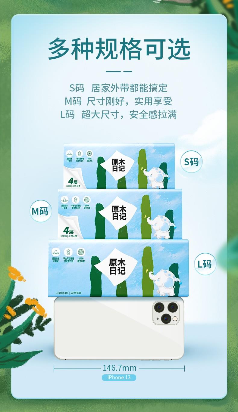 原木日記 3層18包抽紙抽取式紙巾衛(wèi)生紙紙面巾 M碼3層100抽*18包/箱裝