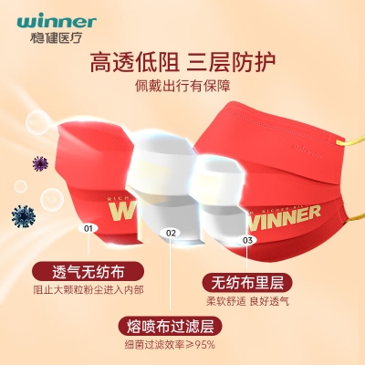 商品名稱:醫(yī)用外科口罩 一次性醫(yī)用外科口罩 穩(wěn)健( Winner) 一次性醫(yī)用外科口罩滅菌獨立裝30只/盒高透低阻中國紅瑞氣紅國慶紅口罩