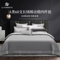 四件套 全棉四件套 長(zhǎng)絨棉四件套純棉 A類(lèi)60支貢緞刺繡純色酒店床上四件套 卡賓灰 1.5/1.8米床通用