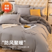 四件套 南極人四件套 保暖加厚秋冬法蘭絨四件套 1.5/1.8米床雙人加絨被套200*230cm珊瑚絨牛奶絨被罩床單款公主風(fēng)