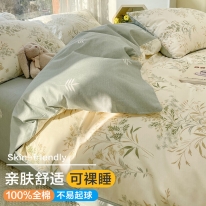 四件套 潔麗雅四件套 純棉四件套 全棉100%新疆棉床上用品套件 床單款雙人被罩被套200*230cm 治愈系1.5/1.8米床