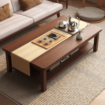 千禧華府實(shí)木腿茶幾客廳家用現(xiàn)代簡約辦公室小戶型新中式茶桌 胡桃雙層120