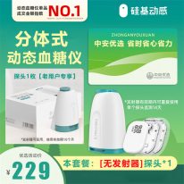 自營硅基動感 硅基輕享分體式可復用動態(tài)血糖儀不扎手指 1個發(fā)射器+2個探頭
