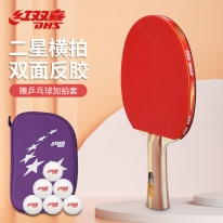 紅雙喜乒乓球拍 二星乒乓球拍 橫拍雙面反膠乒乓球拍 單拍+6只球
