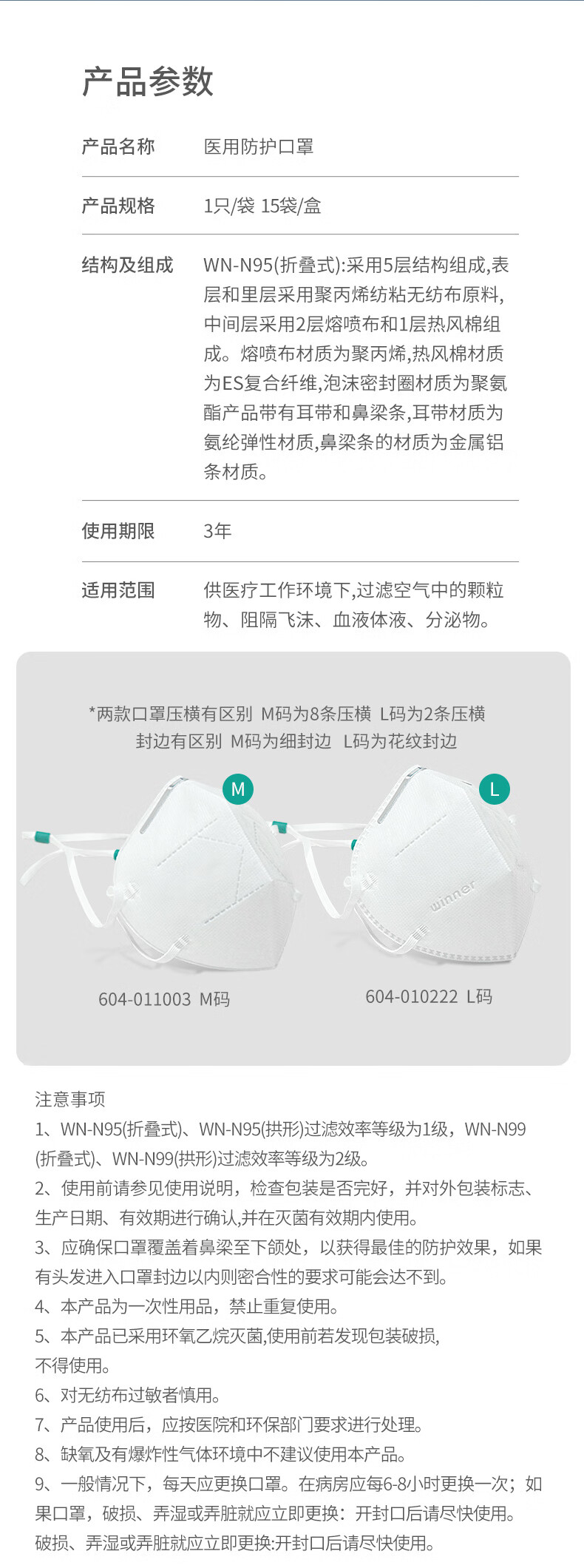商品名稱:穩(wěn)健n95口罩 醫(yī)用N95口罩 N95口罩滅菌級15只獨(dú)立裝