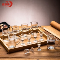 酒具 青蘋果 白酒杯分酒器套裝家用小號(hào)玻璃酒杯一口杯酒盅中式酒具帶刻度二兩杯【步步高升10壺10杯】