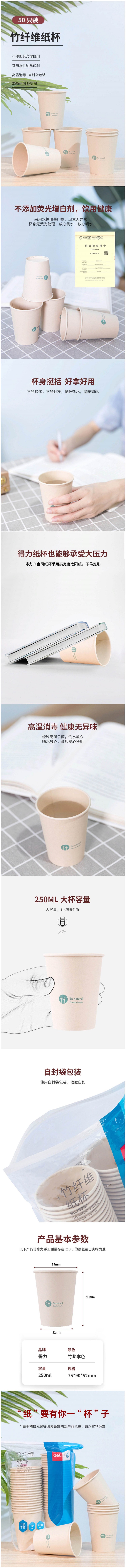 商品名稱:得力紙杯 一次性紙杯 19207竹纖維紙杯250ml/50只