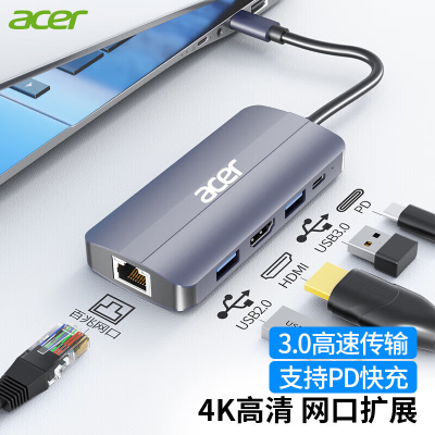 自營宏碁usb分線器Type-C擴展塢千兆網(wǎng)口網(wǎng)線轉(zhuǎn)接頭 USB3.0分線器有線網(wǎng)卡RJ45轉(zhuǎn)換器 hdmi4K高清pd充電拓展塢