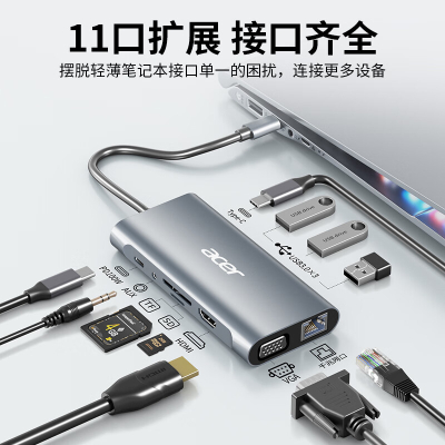 自營宏碁usb分線器Type-C擴(kuò)展塢千兆網(wǎng)口網(wǎng)線轉(zhuǎn)接頭 USB3.0分線器有線網(wǎng)卡RJ45轉(zhuǎn)換器 hdmi4K高清pd充電拓展塢