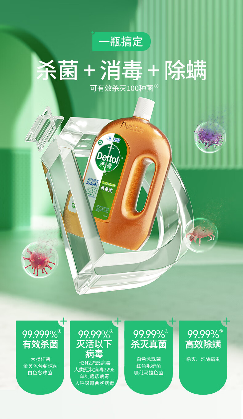 自營滴露(Dettol)洗衣消毒液衣物消毒水1.8L*2 家居寵物環(huán)境除菌除螨 非84酒精