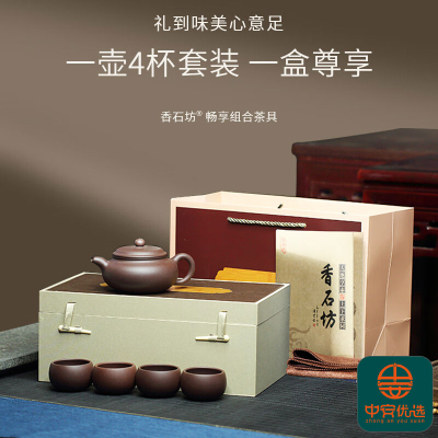自營(yíng)香石坊紫砂壺套裝 宜興純手工紫砂壺 原礦紫砂壺功夫茶具套裝泡茶壺對(duì)盞 一壺4杯套裝