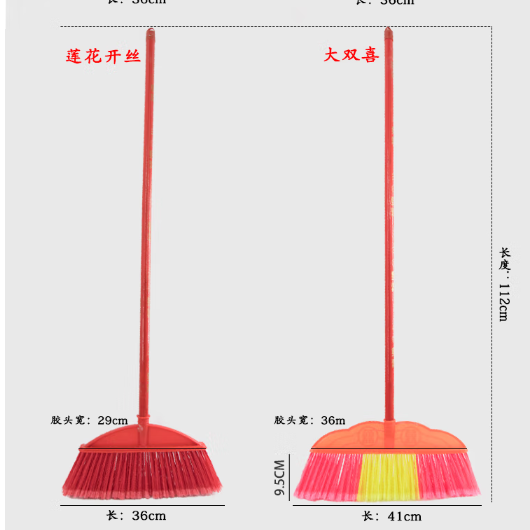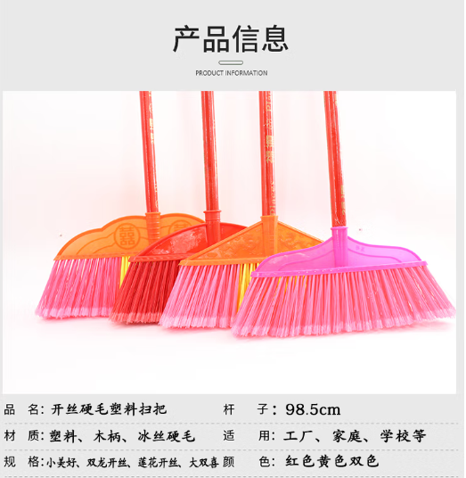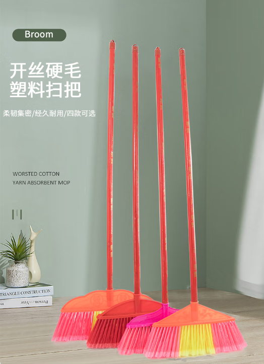 商品名稱:國產(chǎn) 開絲硬毛塑料掃把 蓮花開絲掃把頭(配木桿)33cm毛寬 HKQS-102