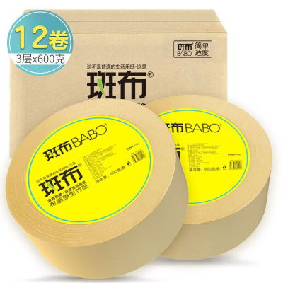 商品名稱:斑布大盤紙卷紙衛(wèi)生紙大盤紙3層600g*12卷/箱