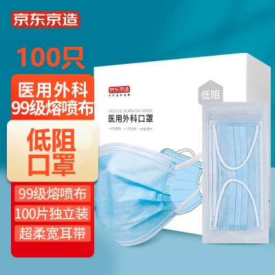 低阻口罩 滅菌口罩 藍(lán)色口罩 一次性醫(yī)用外科口罩 100片/盒