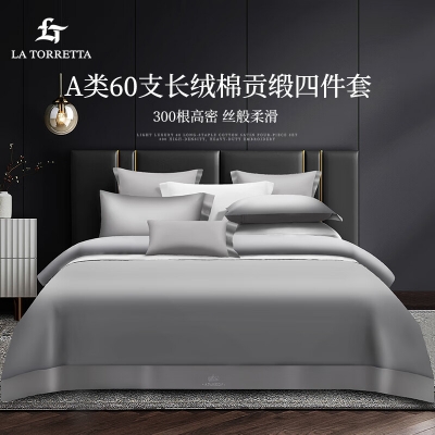 四件套 全棉四件套 長(zhǎng)絨棉四件套純棉 A類60支貢緞刺繡純色酒店床上四件套 卡賓灰 1.5/1.8米床通用