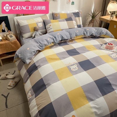 四件套 潔麗雅四件套 純棉四件套 全棉100%新疆棉床上用品套件 床單款雙人被罩被套200*230cm 治愈系1.5/1.8米床