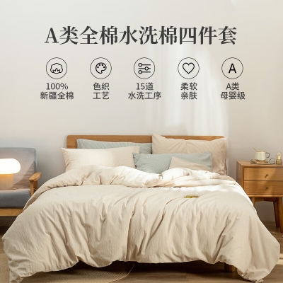 四件套 素時(shí)代四件套 純棉四件套 A類全棉秋冬季床上四件套日式無(wú)印風(fēng)水洗棉套件