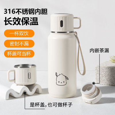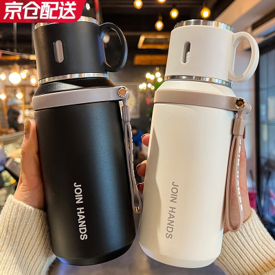COOKSS保溫杯大容量水杯子 316不銹鋼便攜泡茶杯子帶蓋 白色600ml