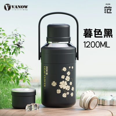 Vanow2024新款保溫杯 大容量保溫杯 便攜保溫杯女316不銹鋼 黑(可提可背) 1200ml