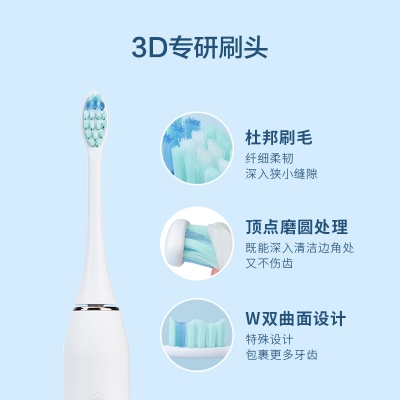 舒客電動(dòng)牙刷成人/電動(dòng)牙刷 可充電 聲波 軟毛 5檔清潔模式 分段式植毛T3 冰島白