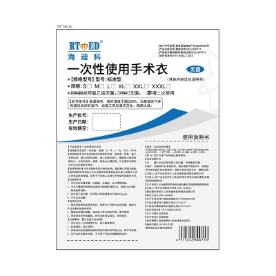 海迪科一次性使用手術(shù)衣 SMS無紡布 醫(yī)用防護(hù)產(chǎn)品 均碼(1件/袋 80袋/箱) 單位:袋
