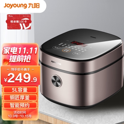電飯煲 智能電飯煲 九陽(yáng)電飯煲 電飯煲 電飯鍋 5L大容量3-10人 銅匠厚釜內(nèi)膽智能預(yù)約多功能燜煮防溢家用電飯煲F510