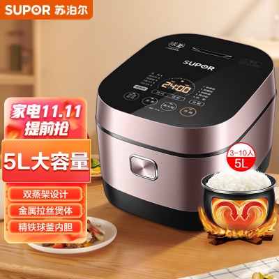 電飯煲 家用電飯煲 5升電飯煲 蘇泊爾電飯鍋 5LIH電磁加熱精鐵球釜3-10人雙蒸架安全童鎖家用智能電飯煲50HC750