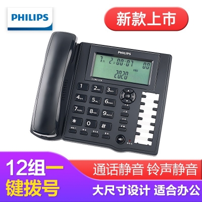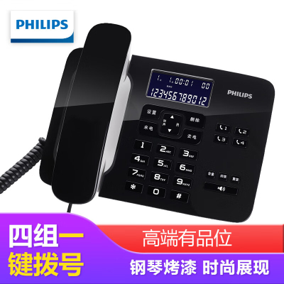 電話機(jī) 飛利浦電話機(jī) 酒店前臺(tái)電話機(jī)座機(jī) 公司辦公室老板桌黑名單雙插口一鍵撥號(hào)固定電話